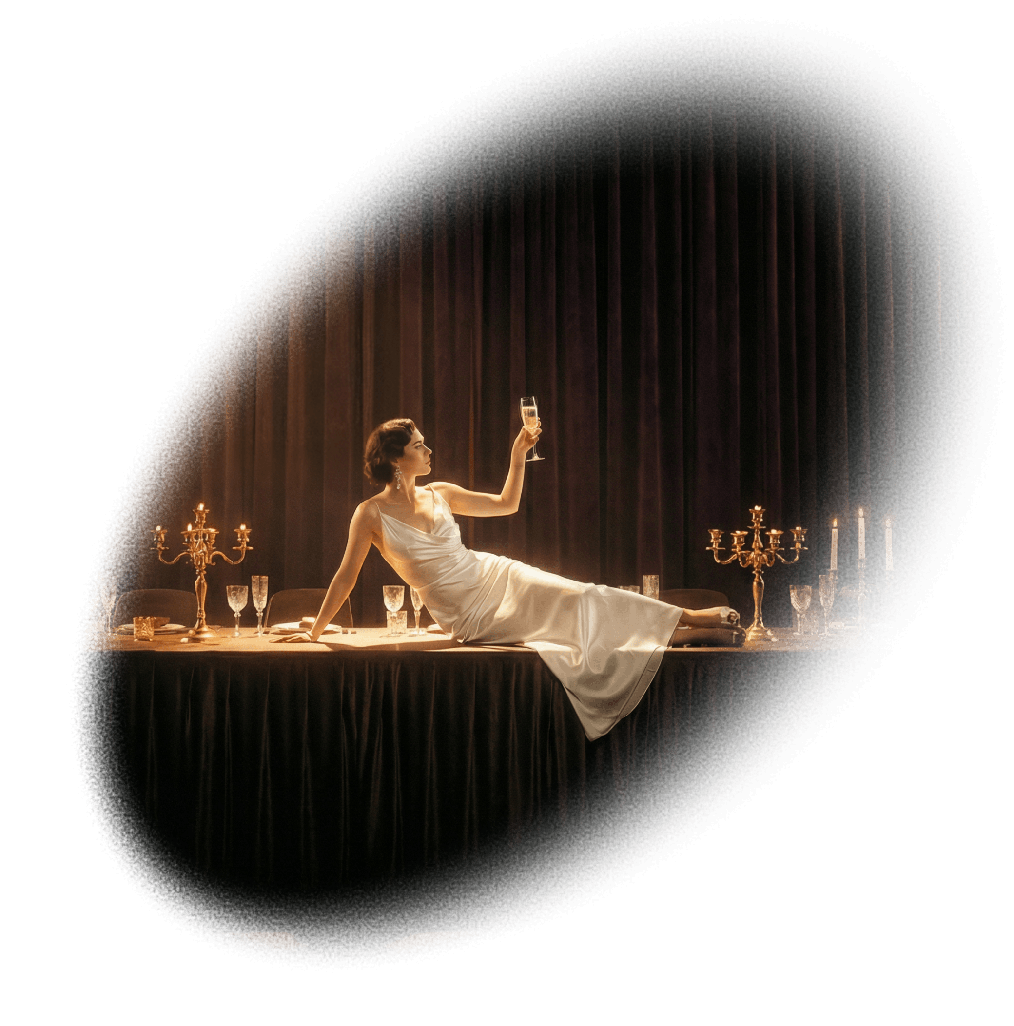 Представь, что Кристис и Сотбис оккупировали арт-директора — в ход идут перья всех мастей, стразы на бабочках, бархатные лацканы и наглость, с которой Сальвадор Дали выгуливал муравьеда на улицах Парижа в 60-х.